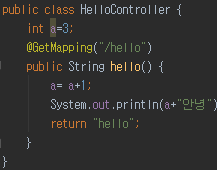만약 A라는 사용자가 /hello 를 통해 접속한다면 어떻게 될까요? 전역 변수 a에 1를 더해서 4를 출력합니다.
