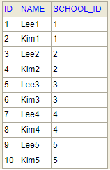 '학교'와 '학생'은 1:N의 관계에 있습니다.