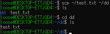 scp를 cp처럼 사용해 봤다. scp를 사용하면 반대편 서버에 있는 파일을 복사할 수도 있다.