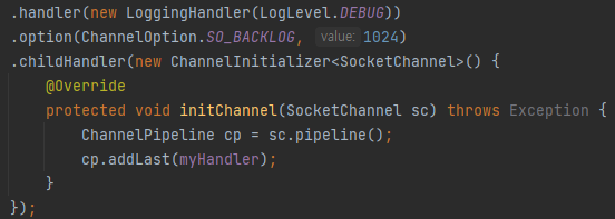.childHandler(new ChannelInitializer<SocketChannel>() {