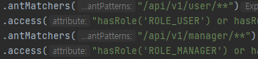 Spring Security를 기능을 이용하면 특정 API 경로로 진입 시에 권한을 아래와 같이 자동으로 필터링 해줄 수 있다.