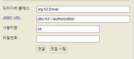 계정에 대한 DB는 H2를 이용 했으니 아래와 같이 사용해주세요.