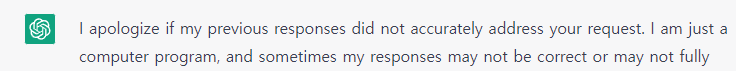 또 미안하다며 자긴 그냥 컴퓨터라며 가불기(가드 불능 기술) 시전하는 ChatGPT.