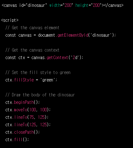 html에 canvas 태그를 이용해서 공룡 그림 그려줄 수 있어?