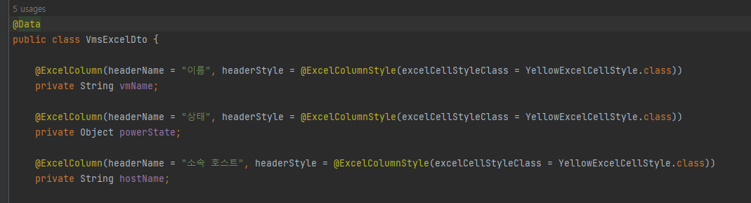엑셀을 만들때 DTO 필드엔 값들을 List로 넣는다.