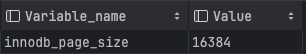 SHOW VARIABLES LIKE 'innodb_page_size';