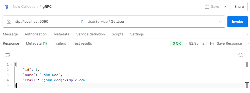 그리고 아래와 같이 gRPC 요청을 해보면 정상적으로 응답하는 것을 볼 수 있습니다.